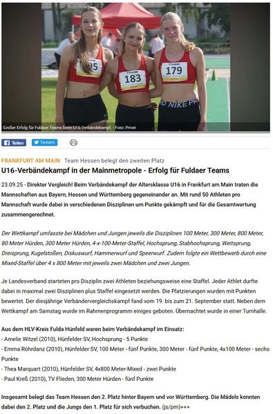 - Emma Röhrdanz (2010), Hünfelder SV, 100m 5 Punkte, 300m 5 Punkte, 4x100m 6 Punkte