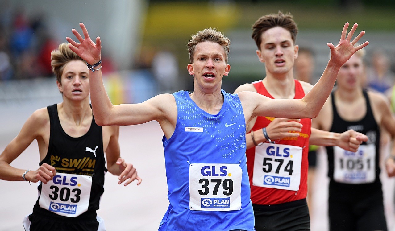 Auch Jan Dillemuth (Athletics Team Karben) hätte sich einen anderen EM-Verlauf gewünscht. Kein Wunder gehörte der Deutsche 1500-Meter-Meister von Rostock doch zu den klaren Endlauf-Anwärtern. Der Mann aus der Wetterau ist eigentlich gut in der Gestaltung der Endphase (wie in Rostock), kann aber auch voll auf Tempo (SB 3:45,94 min.) laufen. Beides klappte bei Dillemuth leider diesmal nicht. Dass Vorläufe bei internationalen Meisterschaften voll „auf Zeit“ gelaufen werden, kommt jedoch eher selten vor. Mit 3:55,07 Minuten wurde Jan im ersten Vorlauf Siebter. Auch hier ging es nur um die Platzierung, nämlich unter die Top-Sechs zu kommen. Am Ende fehlten Dillemuth winzige 0,29 Sekunden. Die war der Kroate Nino Jambresic im „Vivat-Ram-Stadion“ schneller unterwegs. „Die ersten paar Runden waren noch gut, dann habe ich ein paar Fehler gemacht und am Ende ist es der siebte Platz geworden“, bilanzierte der Karbener. Pech hatte der Hesse auch noch, denn während des Rennes kam es vor ihn zu einem Sturz, der für einen Schreck-Moment sorgte.