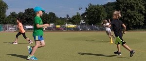 Die Kinder laufen in einem vorgegebenen Feld in individuellen Teampo kreuz und quer umher. Ziel ist es, eine zuvor bekanntegegebene Laufzeit (zwischen 2 und 4 Minuten) möglichst genau abzuschätzen und eigenständig den Lauf zu beenden. Das Kind, welches die vorgegebene Zeit am besten trifft, hat die Runde gewonnen. Die vollständige Trainingskarte und weitere Details zur Übung findet Ihr hier.