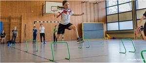 Die Kinder werden in mehrere Staffelteams aufgeteilt. Für jedes Team werden 2 Sprintbahnen benötigt. Auf einer der beiden Bahnen werden 4 - 5 flache Hindernisse in gleichmäßigem Abstand aufgestellt. Nach dem Prinzip einer „Pendel-Staffel" startet das erste Kind über die Hindernisstrecke und schickt durch Übergabe eines Staffelholzes das nächste Kind zurück auf der Flachsprintstrecke ohne Hindernisse, usw. Die gelaufenen Kinder stellen sich hinter den wartenden Kindern an. Die Staffel endet, wenn alle Kinder wieder auf ihrer Ausgangsposition stehen. Welche Staffel ist die schnellste? <ENDE/> Die vollständige Trainingskarte und weitere Details zur Übung findet Ihr hier.