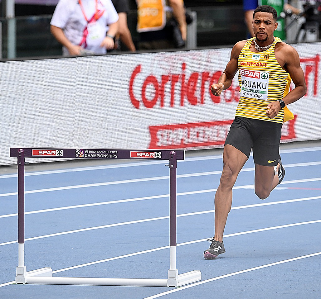 Joshua Abuaku war sicherlich motiviert vom guten Abschneiden seines Trainingsgruppenkollegen, dazu kam noch ein kleines bisschen Wut vom gestrigen Vorlauf, als er das direkte Weiterkommen hauchdünn verpasste. Abuaku erwischte wie Agyekum einen guten Start, hielt sich danach jedoch noch etwas zurück und wartete bis eingangs der Zielgeraden, um die letzte Attacke zu setzen. Am Ende steht ein 2. Platz samt Saisonbestleistung (48,87s) auf dem Papier, neben Agyekum zieht somit auch Abuaku in das morgige Halbfinale (19:35 Uhr) ein.