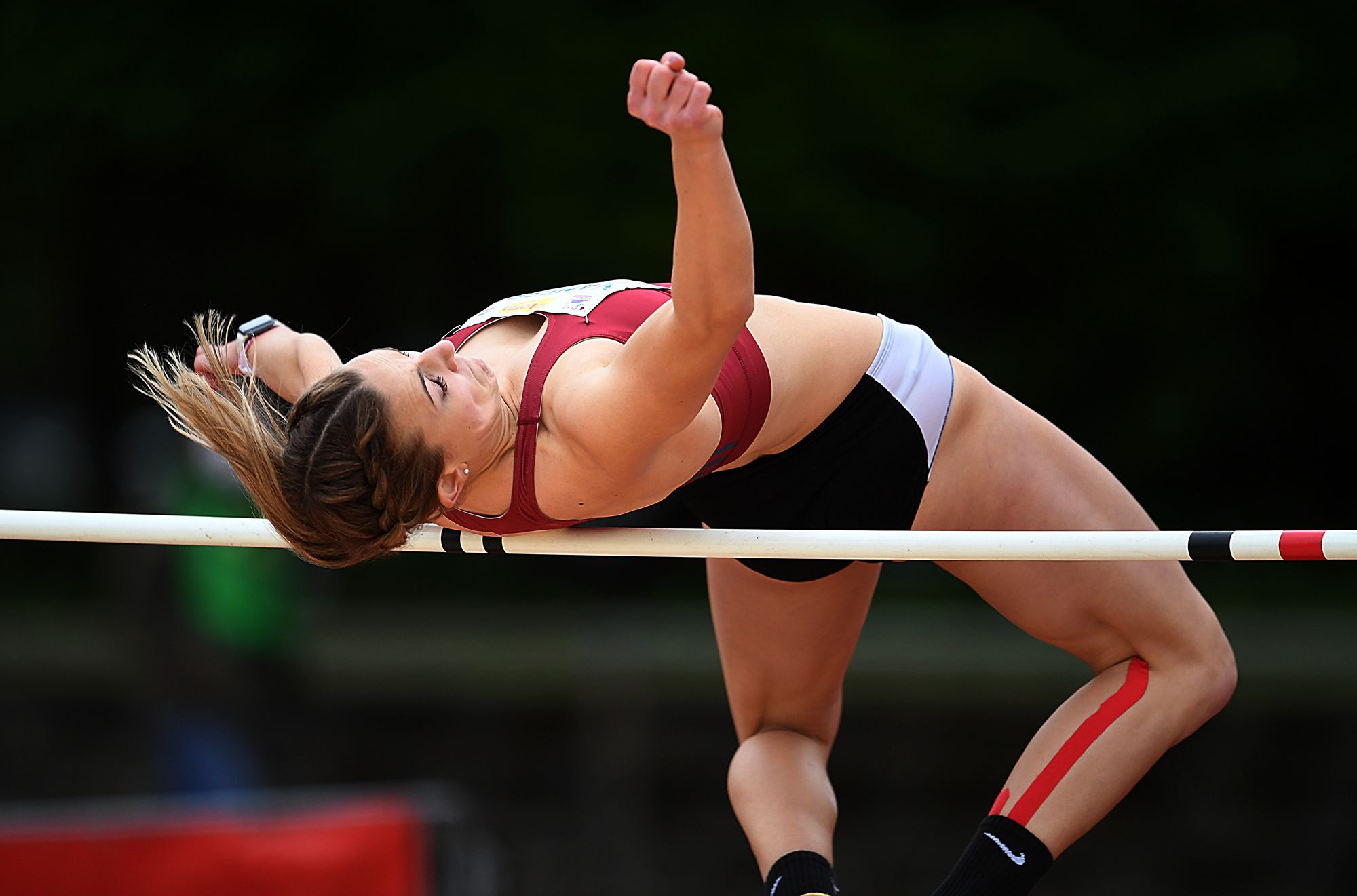 Grimm steigt mit 13,95 Sekunden über 100 Meter Hürden in den Wettkampf ein ein. Ein absolut gelungener Auftakt, lediglich 0,14 Sekunden über ihrer Bestzeit. DLV-Konkurrentin Sophie Weißenberg (TSV Bayer 04 Leverkusen), die schon den Mehrkampf in Ratingen gewonnen hatte, zeigte mit ganz starken 13,56 Sekunden eine neue Bestzeit. Weiter ging es mit dem Hochsprung.Hier trennt sich bei Höhe von 1,80 Metern und mehr die Spreu vom Weizen. In den letzten Jahren kratze Grimm immer ma wieder an der Marke mit der Acht hinter dem Komma. Dass es nun endlich in Götzis klappte - super! Die Bundeskaderathletin musste zudem Nerven beweisen. Sie wurde aufgerufen und sprang laut Anzeige die 1,80 Meter. Doch die Kampfrichter hatten es versäumt, die Latte auch wirklich auf die angezeigten 1,80 Meter zu legen. Nach der Korrektur meisterte Grimm dann aber auch die „richtige“ Höhe – Bestleistung! Ihr Trainer Philipp Schlesinger sah bei den nächsten Versuchen, dass es demnächst noch höher gehen könnte. Im „deutschen Duell“ packte auch die Leverkusenerin Weißenberg die 1,80 Meter.