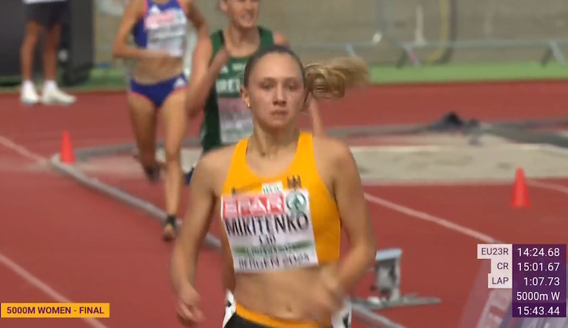 Als nach 3,5 Kilometern die zuvor enteilte Thompson wieder eingeholt war, sprengte kurz darauf Forero die fünfköpfige Spitzengruppe, aus der lediglich Vanessa Mikitenko ambitioniert folgen konnte, die damit entscheidenden Boden auf die Konkurrenz gutmachte. Mit Silber erfüllte sich für die Tochter der fünffachen Olympiateilnehmerin Irina Mikitenko endlich der Traum einer internationalen Medaille. Vor zwei Jahren U20-EM-Fünfte, 2024 wegen Corona um die U20-WM-Endlaufteilnahme gebracht, trat sie nun endgültig in die großen Fußstapfen ihrer Mutter.