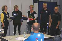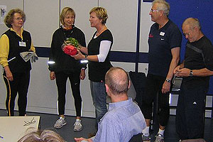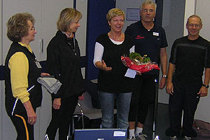 Im Rahmen der letzten Grundausbildungs-Veranstaltung für Lauftreffbetreuer 2009 wurde Charlotte Teske nach zehnjähriger Mitarbeit im HLV-Lehrteam verabschiedet. Neben der Seminarbetreuerin und Landes-Lauftreffwartin Hannelore Bunz waren Christian Andersch und Gerhard Fischer, sowie die Breitensportwartin des HLV, Konstanze Neu-Müller, anwesend. Neu-Müller würdigte in Vertretung von HLV-Präsidentin Anja Wolf-Blanke – mit einfühlsamen persönlichen Worten Charlottes vorbildliches und erfolgreiches Wirken im ehrenamtlichen und beruflichen Bereich, verbunden mit dem herzlichen Dank des Verbands. Dazu hielt sie auch ein Blumengeschenk bereit.