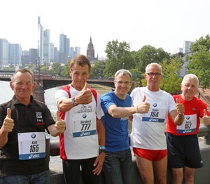 Sie sind die heimlichen Helden des Frankfurt-Marathons: Kalli Flach, Eugen Föt, Horst Jendrasch und Bernhard Schacke. Warum? Weil sie seit der Marathonpremiere am 17. Mai 1981 an allen Veranstaltungen teilgenommen und den Lauf über 42,195 Kilometer auch beendet haben. Die glorreichen Vier sind natürlich Mitglieder des Frankfurt Marathon Clubs und damit stolze Besitzer einer ewigen Startnummer - hierfür sind zehn erfolgreiche Rennen erforderlich. Doch darüber können die Dauerbrenner aus dem Rhein-Main-Gebiet nur müde lächeln. Flach, Föt, Jendrasch und Schacke sind wie früher der VW Käfer - sie laufen, laufen und laufen, einfach immer weiter. Und so feiern sie am 30. Oktober - wie auch der Frankfurt-Marathon - ein ganz besonderes Jubiläum: Die vier Herren im Alter von 60 bis 75 Jahren sind dann nämlich zum 30. Mal dabei. Doch was treibt sie an? Warum geht es immer weiter? Was haben sie in 30 Jahren alles so erlebt auf dem Frankfurter Asphalt?<ENDE/>