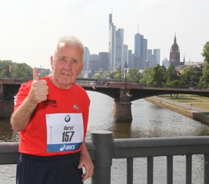 75 Jahre alt ist der ehemalige Zusteller der Deutschen Bundespost. Körperliche Probleme? Fehlanzeige. „Nichts, alles in Ordnung.“ Was auch daran liegen dürfte, dass Jendrasch ein vernünftiger Altersklassenläufer ist. „Die Zeit spielt doch schon längst keine Rolle mehr. Man ist froh, wenn man durchkommt.“ 33 Jahre war er, als er mit dem Laufen begonnen hat, damals hatte er Übergewicht und wollte seine überflüssigen Pfunde loswerden. 88 Kilogramm bei einer Körpergröße von 1,68 Meter, das war eindeutig zuviel. Also ist Jendrasch einfach mal losgelaufen. „Nach meiner Arbeit hatte ich ja immer genügend Zeit. Im Laufe der Jahre bin ich dann immer längere Strecken gelaufen.“ Und wenn’s am 30. Oktober 2011 um 10 Uhr vor dem Messeturm losgeht, steht sein 132. Marathonlauf unmittelbar bevor. „Frankfurt ist jedes Jahr der Abschluss der Laufsaison“, sagt Jendrasch. Der Senior mit der ewigen Startnummer 157 ist im Trikot der TuS Hornau unterwegs - aber längst nicht nur über die Marathondistanz. Auch die 100 Kilometer von Biel hat er bereits 34 Mal hinter sich gebracht, seine Premiere bei dem Ultraklassiker in der Schweiz feierte er bereits 1977. Die Marathon-Bestzeit von Jendrasch steht bei 2:59:10 Stunden, erzielt im Jahr 1983. „Mit dem Laufen kann man nicht aufhören, der Körper hat sich darauf eingestellt.“