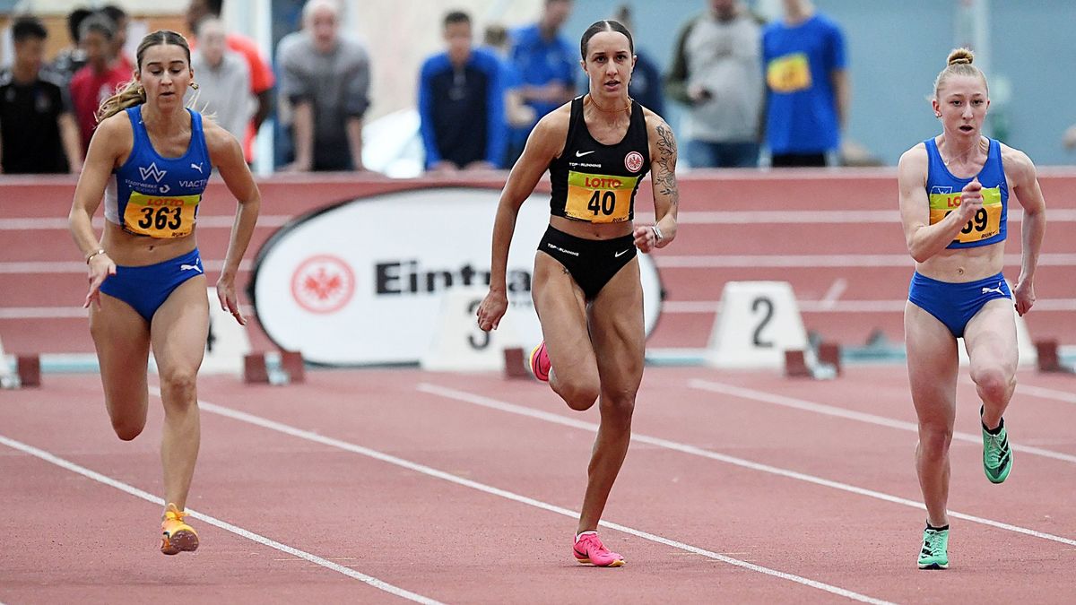 Im 60 Meter Sprint gab es einen Doppelsieg für die Lokalmatadoren im Eintracht-Trikot. Nils Keßler setzte sich in 6,90 Sekunden (VL 6,89 sec.) durch, hakte dabei die B-Norm für die DM in Leipzig ab und hielt Daniel Borchardt (6,93 sec.) knapp auf Distanz. Robin Erewa (TV Wattenscheid) komplettierte in 6,94 Sekunden das Top-Trio.
