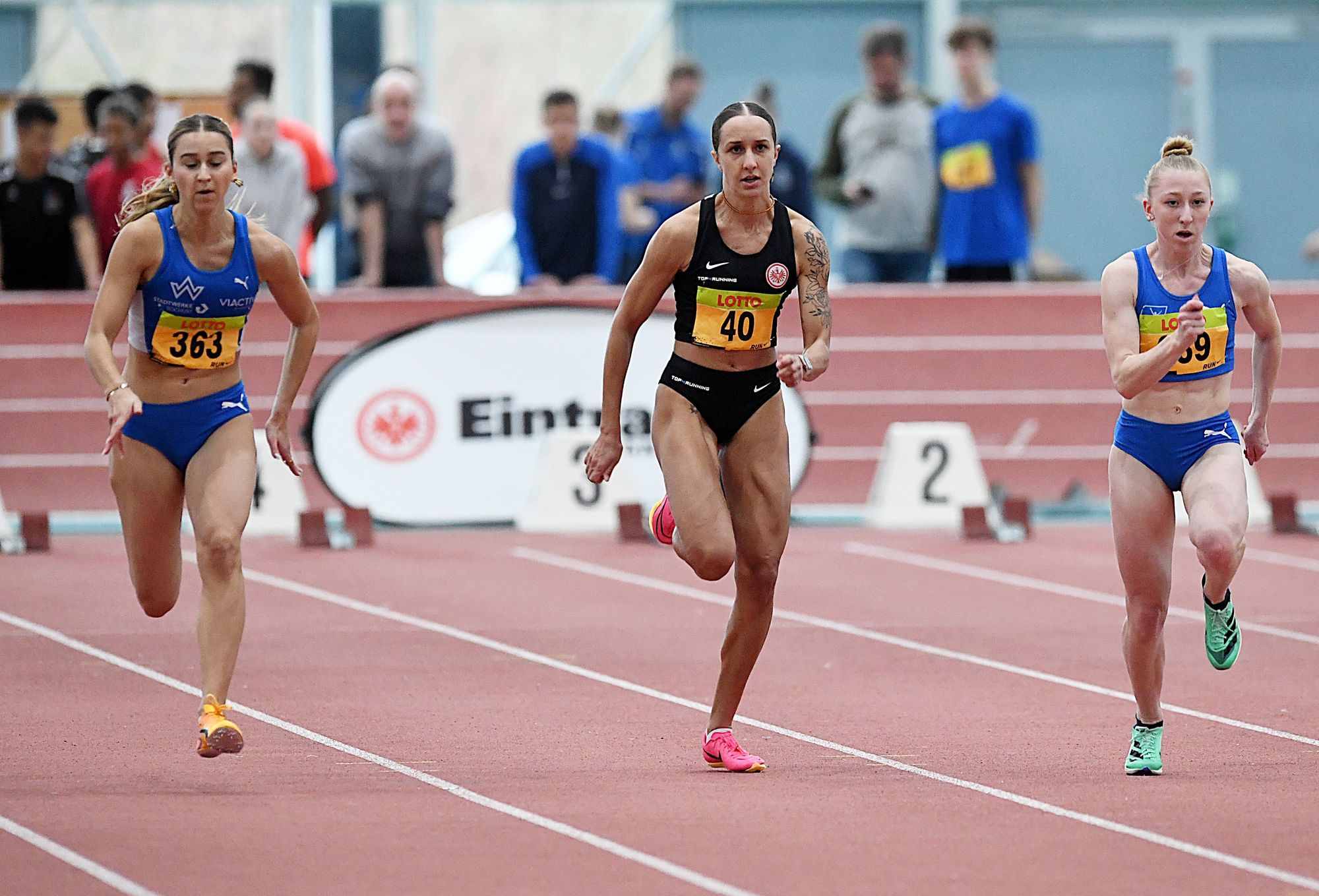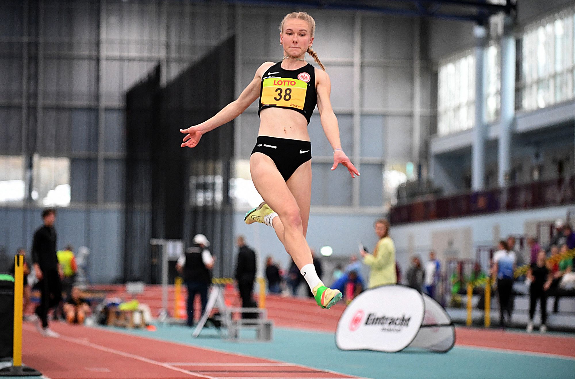 Einen tollen Auftritt hatte Malin Stavenow, die sich im Weitsprung mit 6,19 Metern den Sieg holte, auf den dritten Platz des DLV-Rankings flog und die A-Norm für Leipzig lediglich um einen winzigen Zentimeter verfehlte. Marie Jung (6,05 m) sowie Finja Köchling (5,94 m) sorgten für ein Eintracht-Tripel. Siebenkämpferin Vanessa Grimm (Königsteiner LV) wurde mit 5,89 Metern Vierte. Die Sechs-Meter-Springerin hatte aber noch einige Probleme beim Anlauf. Mit der Kugel konnte sich die WM-Starterin von dem Taunus-Verein (solide 14,24 m) gegen Mehrkampf-Kollegin Lucie Kienast (Eint. Ffm./13,94 m) durchsetzen. Ihren dritten Start absolvierte Grimm an diesem Tag dann über 60 Meter Hürden (3.) und stellte hier mit 8,59 Sekunden ihre „PB“ ein. Der Sieg ging hier an Johanna Büchs (LG Main-Spessart/8,47 sec.).