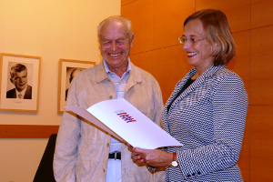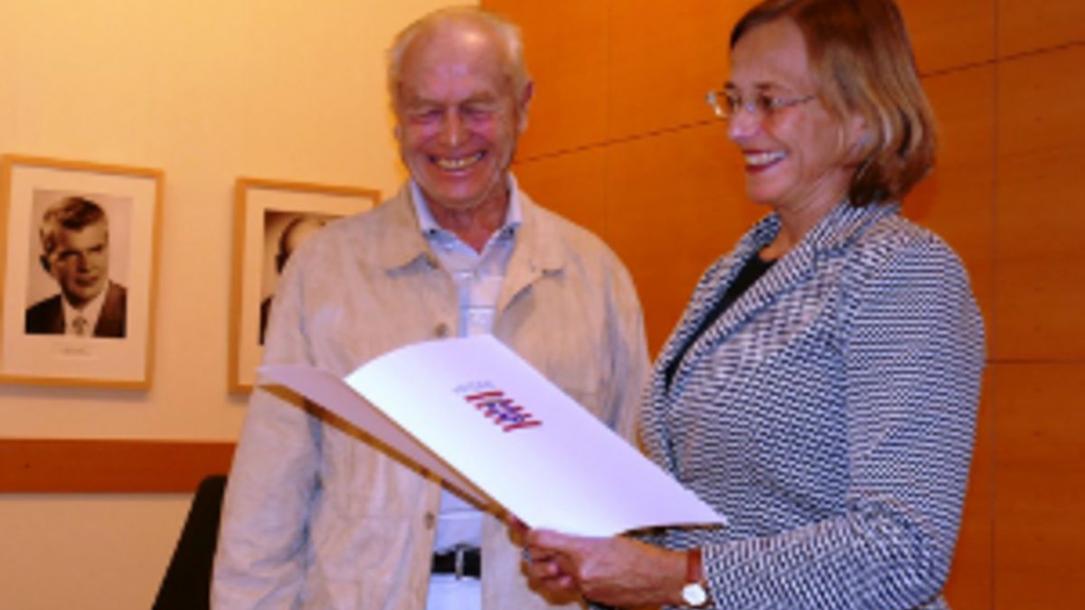 Einer der Gründerväter des LAZ Gießen Stadt und Land ist im Namen des hessischen Ministerpräsidenten Volker Bouffier für sein langjähriges ehrenamtliches Engagement mit dem Ehrenbrief des Landes Hessen ausgezeichnet worden: Volker Clarius. Eine frühere Schülerin überreichte ihm die Urkunde, die Gießener Oberbürgermeisterin Dietlind Grabe-Bolz. „Er war im Sport sehr streng und hat auch in den anderen Fächern zielorientiertes Arbeiten verlangt“, erinnerte sich Grabe-Bolz an den ehemaligen Lehrer der Gießener Liebigschule. Von 1958 bis 1994 setzte sich Volker Clarius als Trainer beim MTV Gießen ein. 1981 half er mit das LAZ Gießen zu gründen, bis 1989 war er dort im Vorstand tätig, seitdem ist er LAZ-Ehrenvorsitzender.<ENDE/> Noch heute beteiligt sich der mittlerweile 82-Jährige an der Vorstandsarbeit. Zu Clarius´ Verdiensten zählen der Aufbau des Schulsportzentrums an der Liebigschule sowie die mehrmalige Teilnahme der Schule am Bundesfinale von „Jugend trainiert für Olympia“. Da überrascht es nicht, dass Clarius in der Universitätsstadt als „Mister Leichtathletik“ bezeichnet wird. Seine Tochter Birgit war es auch, die dem Namen Clarius zu internationaler Bekanntheit verhalf. Der größte Erfolg der Mehrkämpferin (p. B.: 6.500 Punkte) war Platz drei im Fünfkampf bei der Hallen-WM 1993, dazu kamen im Siebenkampf der Sieg bei der Universiade 1991 und zwei siebte Plätze (Olympia 1992 und EM 1990).