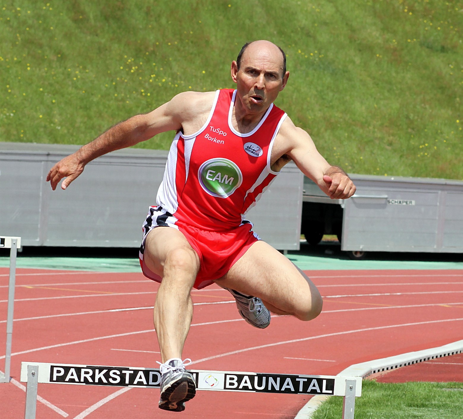 on seinem Sieg bei den HLV-Masters in Hünfeld ermutigt hat Jörg Grebing (TuSpo Borken) für den Weitsprung der M 65 gemeldet und hat hier ebenso ein Dutzend Gegner wie über 200 Meter gegen sich. Selbst über die Hürden-Distanzen der M 65 gibt es Vorläufe. Da ist es für Zehnkämpfer Bernd Gabel (MT) ratsam sich auf den Stabhochsprung zu konzentrieren.