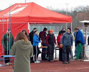 Die hessischen Winterwurf-Meisterschaften auf der Anlage in der Frankfurter Hahnstraße waren eine harte Belastungsprobe für Athleten, Trainer, Betreuer, Kampfrichter und Helfer. Bei Temperaturen von minus drei Grad dauerte die Veranstaltung von 10 bis 18 Uhr - glücklicherweise waren alle Beteiligten warm „eingepackt“. Und einige Highlights gab es obendrein. So gewann die ehemalige deutsche Meisterin Sabine Rumpf (LSG Goldener Grund/Selters) das Diskuswerfen mit 55,90 Meter, im Hammerwurf gab es ein spannendes Duell zwischen der deutschen U23-Meisterin Carolin Paesler und Svenja Kern (beide LG Eintracht Frankfurt). Letztlich setzte sich der Neuzugang vom Klub Hallesche LF mit 57,89 Meter vor Kern (56,72) durch. Mit zwei Titel trat Hendrik Nungeß (LG Neu-Isenburg/Heusenstamm) die Heimfahrt an. Der dreimalige deutsche B-Jugendmeister 2011 (Speer/Winterwurf, Speerwerfen und Zehnkampf) setzte sich in der U20 mit 55,02 Meter im Speerwerfen sowie mit dem Diskus (45,71) durch. Wie auch Marc Krause (TGS Niederrodenbach) in der U18 (53,95) und Sebastian Dietl (LG Eintracht Frankfurt/51,51) bei den Männern. Ebenfalls eine Klasse für sich war Rebecca Katharina Müller (TGS Niederrodenbach) als Diskussiegerin der U20 mit 48,29 Meter.