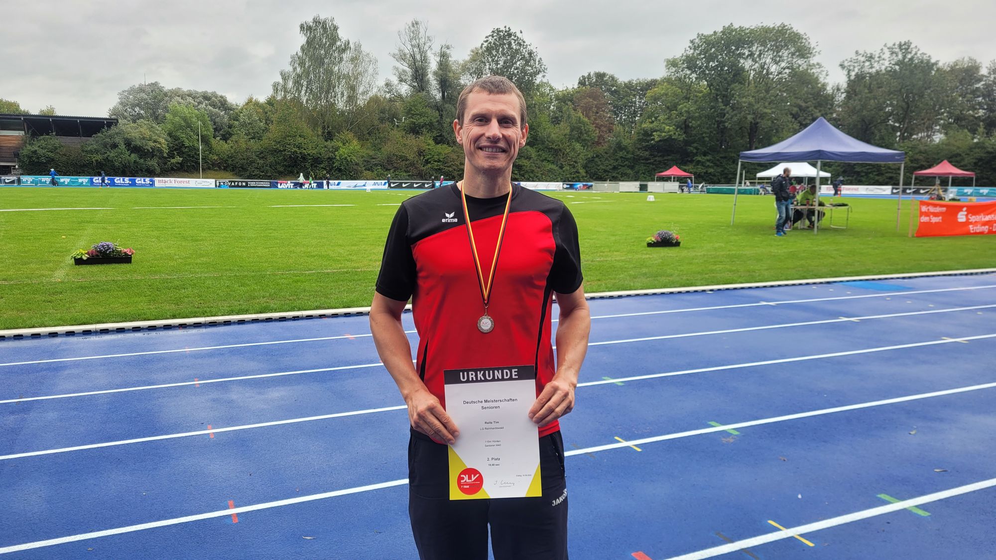 Der krönende Abschluss gelang ihm dann im 110-Meter-Hürdensprint. Nach drei Bronzemedaillen von 2019 bis 2021 in der M35 holte Reitz im ersten Jahr in der M40 in 18,68 Sekunden die Silbermedaille. Schneller war nur Dauerkonkurrent Jens Beintken. „Dafür, dass ich seit der Senioren-WM in Tampere kaum noch Hürdentechnik trainiert habe, geht die Zeit in Ordnung“, sagte Reitz.
