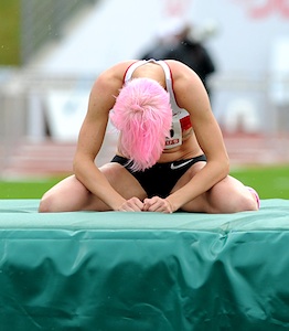 In Wattenscheid wurde der gewaltige Druck offensichtlich, der auf Ariane Friedrich seit ihrem Achillessehnenriss im Dezember 2010 lastet. Mit der Aussicht auf die Olympischen Spiele in London hatte sie die langwierige Rehabilitation und das Aufbautraining auf sich genommen, war im Winter bereits wieder deutsche Hallenmeisterin geworden; im Sommer sollten die drei erwähnten Wettkämpfe reichen, um die Norm zu meistern. Doch bis jetzt sind es nur 1,92 Meter - punktgenau die EM-Norm. Im Lohrheidestadion blieb die Athletin von der LG Eintracht Frankfurt bei 1,86 Meter hängen, scheiterte dreimal an 1,93 Meter. Das Wetter war mies, es regnete immer schlimmer, hinzu kamen wechselnde Winde von allen Seiten. Der Himmel war dunkel. „Die Bedingungen waren der Killer“, sagte Ariane Friedrich. Sie war frustriert, richtig down, ihr standen die Tränen in den Augen, auf der Pressekonferenz weinte sie hemmungslos. Vielleicht musste das alles einmal raus.