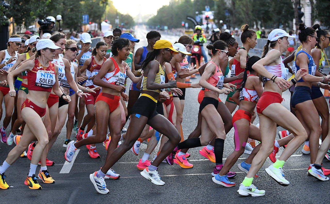 An der Spitze des Feldes sah es lange nach einem dreifachen Triumph für die Laufasse aus Äthiopien aus. Amane Beriso Shankule setzte mit 2:24:23 Stunden knapp gegen Titelverteidigerin Gotytom Gebreslase (2:24:34 std.) durch. Bei der letztjährigen WM in Eugene (USA) hatte Gebreslase mit 2:18:11 Stunden noch für einen neuen Meisterschaftrekord aufgestellt. An eine Steigerung dieser Top-Zeit war bei den extrem fordernden Rahmenbedingung schlicht unmöglich. Yalemzerf Yehualaw (ebenfalls ETH) lag lange auf Bronzekurs, ehe ihr auf den letzen Kilometern die Kräfte schwanden und sie noch von zwei Gegnerinnen eingesammelt wurde. Die Weltrekordlerin über 10 Kilometer wurde mit 2:26:13 Stunden letztendlich Fünfte. Den Kampf um „Bronze“ entschied die Marokkanerin Fatima Ezzahra Gardai mit 2:25:17 Stunden zu ihren Gunsten. Die Nordafrikanerin hatte im Ziel sogar noch die Kraft, ihren bisher größten Erfolg ausgiebig jubelnd zu feiern.