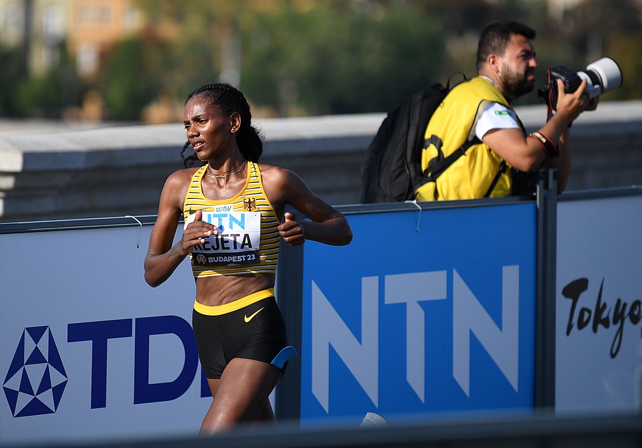 Melat Yisak Kejeta (LT Kassel), übrigens die einzige deutsche Starterin im Feld, war nach der kurzen Einführungsrunde gleich in einer größeren Spitzengruppe präsent. Als es dann auf die letzten zehn Kilometer ging, musste Kejeta ein wenig abreißen lassen. Nach 2:29:04 Stunden lief die Nordhessin als Elfte über die Ziellinie auf dem Heldenplatz. Damit war sie hinter Lonah Salpeter (ISR/4. mit 2:25:38 std.) die zweitbeste Europäerin bei der Hitzeschlacht in Ungarn. Ärzte und medizinisches Personal hatte im Zielbereich reichlich Arbeit, da sich viele Athletinnen nicht mehr auf den Beinen halten konnten und zusammenbrachen.