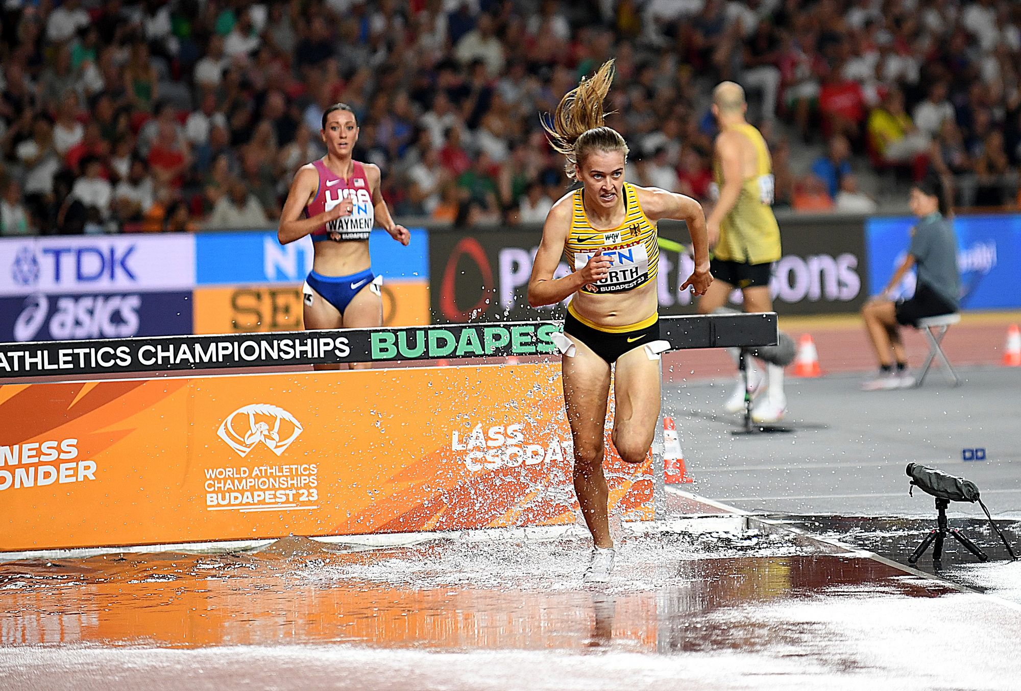 Eine starke letzte Runde lief auch die neue Weltmeisterin. Die gebürtige Kenianerin Winfried Mutile Yavi, jetzt für Bahrain startend, setzte sich mit starken 8:54,29 Minuten gegen zwei ehemalige Landsfrauen durch. Beatrice Chepkoech, die Weltrekordlerin, blieb mit 8:58,98 Minuten ebenfalls noch unter der Neun-Minuten-Schallmauer. Das Podium komplettierte als Dritte mit 9:00,69 Minuten Faith Cheprotich (KEN), die noch der Jugendklasse U20 (!!!!) angehört. Beste Europäerin war Alice Finot (FRA/5.), die mit 9:06,15 Minuten einen neuen Landesrekord aufstellte. Einen Platz dahinter sortierte sich die Slowenin Marusa Mimas (9:06,37 min./auch Landesrekord) ein.
