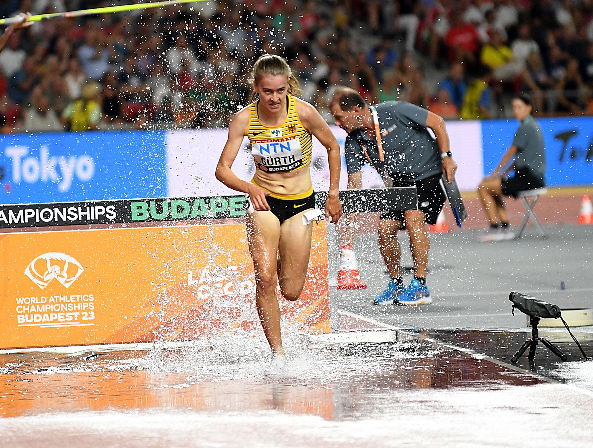 Besser geht’s nicht. Olivia Gürth (Dieser TSK Oranien), regelmäßig „Trainings-Gast“ am Stützpunkt in der Hahnstraße, sorgte im Laufbereich für die große Überraschung bei der WM. Nachdem sich die 21-Jährige mit der neuen Bestmarke von 9:24,28 Minuten (zuvor 9:26,08 min.) ins Hindernisfinale von Budapest gelaufen hatte, setzte Olivia dort noch einen drauf. Innerhalb weniger Tage gelang der U23-Europa-Meisterin von Espoo eine erneute Steigerung. Der Schützling von Wolfgang Heinig lief eine starke Schlussrunde und wurde mit der neuen „PB“ von 9:20,08 Minuten (14.) belohnt. Doch damit nicht genug, denn mit dieser tollen Zeit knackte die Studentin schon frühzeitig die Norm für Olympia in Paris (9:23,00 min.) und stellte auch noch eine neue deutsche U23 Bestleistung auf. Die gehörte bis dahin einer Hessin, die ebenfalls von Heinig trainiert wird. Gesa Felicitas Krause (damals LG Eintracht Frankfurt) lief bei Olympia 2012 in London 9:23,52 Minuten.