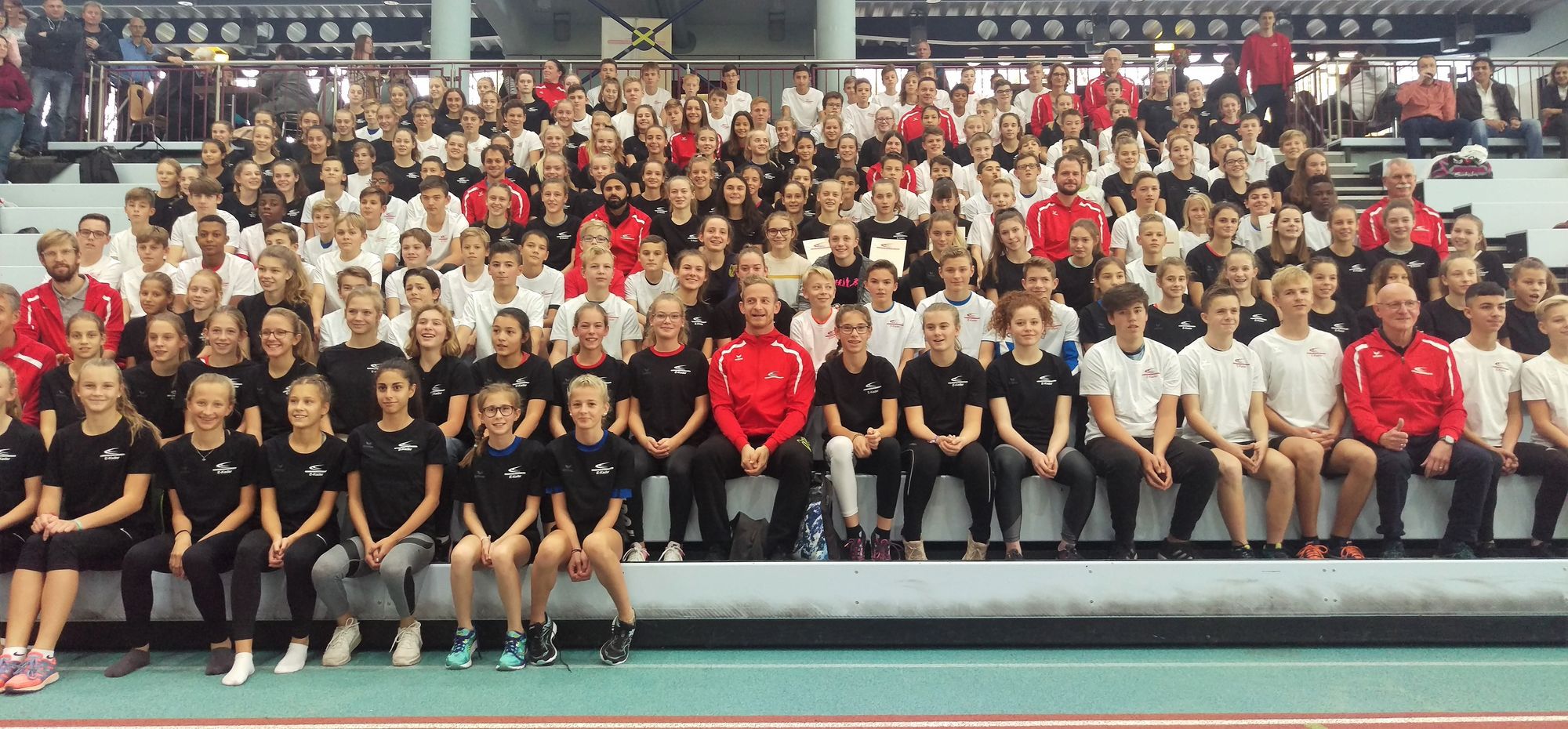 Erstmals hat es im Hessischen Leichtathletik-Verband (HLV) eine zentrale E-Kader-Nominierung mit integrierter Kadereröffnung gegeben, wobei die Organisatoren des HLV-Teams Leistungssport tatkräftig von der Eintracht unterstützt wurden. Mehr als 180 Kinder plus Eltern sowie die E-Kadertrainer waren der Einladung gefolgt, und so wurde die Premiere im Sport- und Freizeitzentrum Frankfurt-Kalbach ein großer Erfolg. Trainerlegende Günter Eisinger brachte es auf den Punkt: „Bei einer solchen Resonanz muss uns um die Zukunft der Leichtathletik nicht bange sein!“ Morgens ging es für die Jahrgänge 2003, 2004 und 2005 los mit dem Landeskader-Einstiegstest. Und auch hier gab sehr gute Resonanz und viel Lob für die Organisation um Gudrun Rouhi und Carsten Ebert. Viele Eltern lobten die Veranstaltung und freuten sich über die Anerkennung.