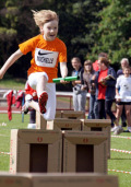 Motivierende Mehrkämpfe als Modellwettkampf „Am liebsten hätte ich noch mehr gemacht! Das hat so Spaß gemacht, auch wenn es ganz schön anstrengend war!“, beschreibt Lena aus der vierten Klasse der Fried-Lübbecke-Grundschule, deren Team den ersten bundesweiten Modellwettkampf auf Schulebene zum neuen Wettkampfkonzept Kinderleichtathletik des Deutschen Leichtathletik-Verbandes (DLV) gewonnen hat. Auch nach dem furiosen Finale beim Team-Biathlon und der anschließenden Pokal- und Medaillenübergabe waren alle Kinder der beteiligten acht Teams begeistert. Auf die Frage „Wollt Ihr das nächstes Jahr nochmal?“ riefen dann 80 Mädchen und Jungen lauthals und deutlich „JA!!“. Die begleitenden Lehrer und Eltern waren sich aufgrund ihrer gemachten Beobachtungen und Erfahrungen auch einig, dass die Umsetzung solcher Leichtathletikwettkämpfe wirklich kindgemäß ist.