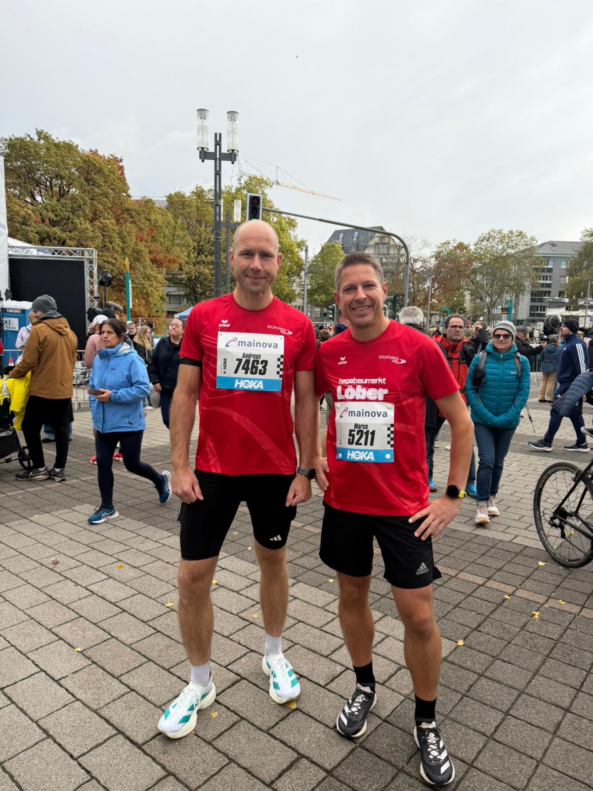 Auf den 42,195 Kilometer durch die Innenstadt und die Stadtteile Sachsenhausen, Niederrad, Schwanheim, Höchst, Nied, Griesheim und Höchst übertraf Marco Fischer (TSV Udenhausen) mit 3:06:20 Stunden sein vorher geäußertes Ziel um etwas über drei Minuten und belegte den 9. Platz in der M45. Beide Hälften waren fast identisch - die zweite war zwei Sekunden schneller - das war hervorragende Renneinteilung bei windigen Bedingungen in der Bankenstadt.