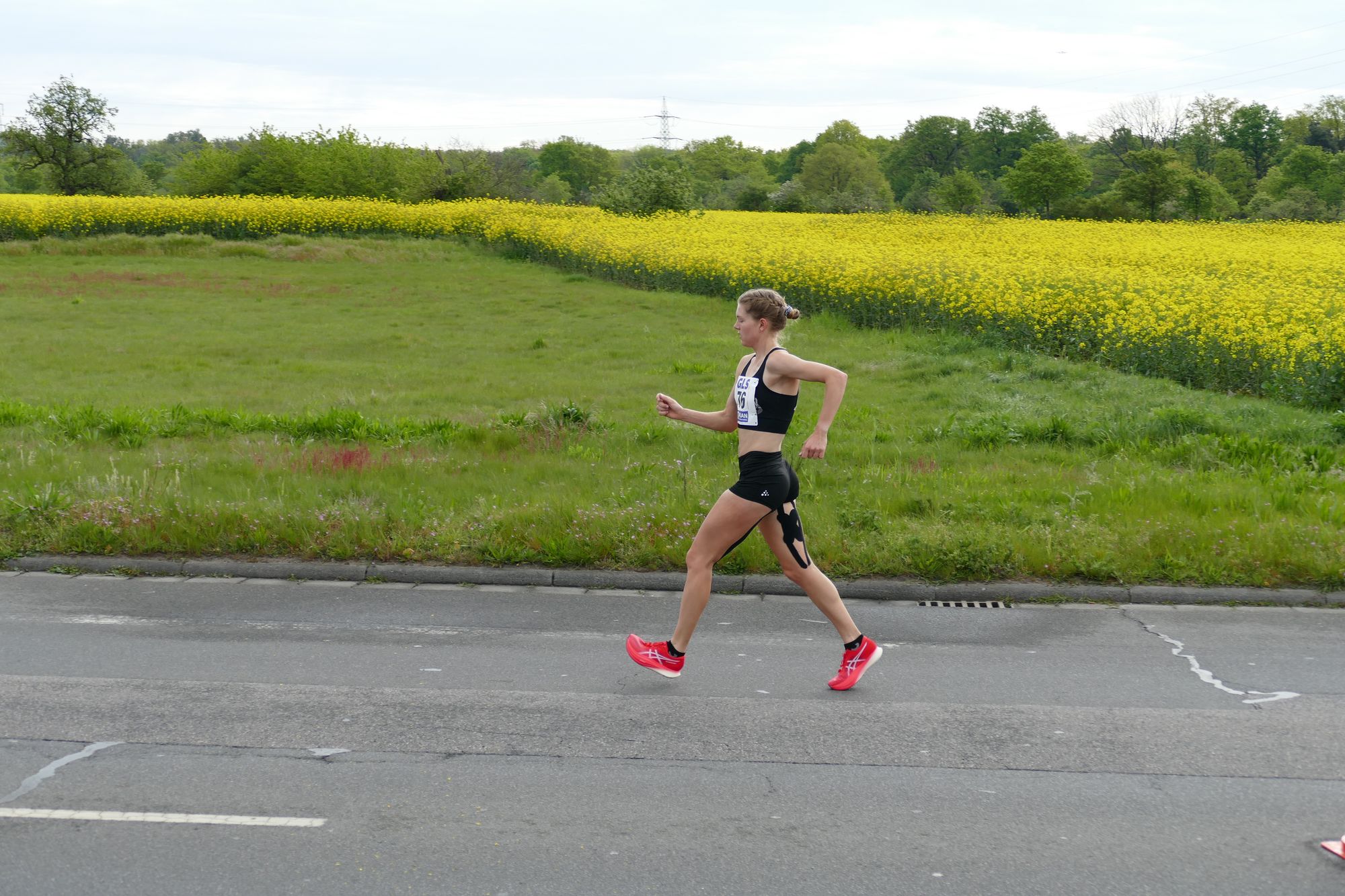 Von den Vorbedingungen völlig unbeeindruckt gingen Kiefer und Gabriel die 10 km beherzt in der Spitzengruppe an, die bis 5 km eng zusammen unterwegs war. Nach 6 Kilometern konnte Anna-Maria Gabriel (im Ziel 3. in 48:49 min) dem hohen Tempo nicht mehr folgen und auch Kylie Garreis (im Ziel 2. in 48:31 min) musste Tabea Kiefer nach 7 km ziehen lassen. Mit einer schnellen zweiten Rennhälfte und einer neuen Bestzeit von 47:40 min (Hessischer Rekord), vor Ihren beiden ebenfalls noch unter der U20-WM Norm von 49:30 min mit starken Zeiten ins Ziel einkommenden Mitbewerberinnen, sicherte sich die gebürtige Steinbergerin verdient die Deutsche Meisterschaft und untermauert damit ihren Platz als schnellste Normerfüllerin für die U20-WM. Das tolle Ergebnis der WU20 rundet Liv Minzenmay (Eintracht Frankfurt) ab, die bei ihrem ersten Wettkampf über 10km in guten 56:09 min ins Ziel kam.