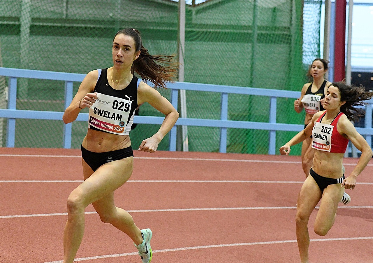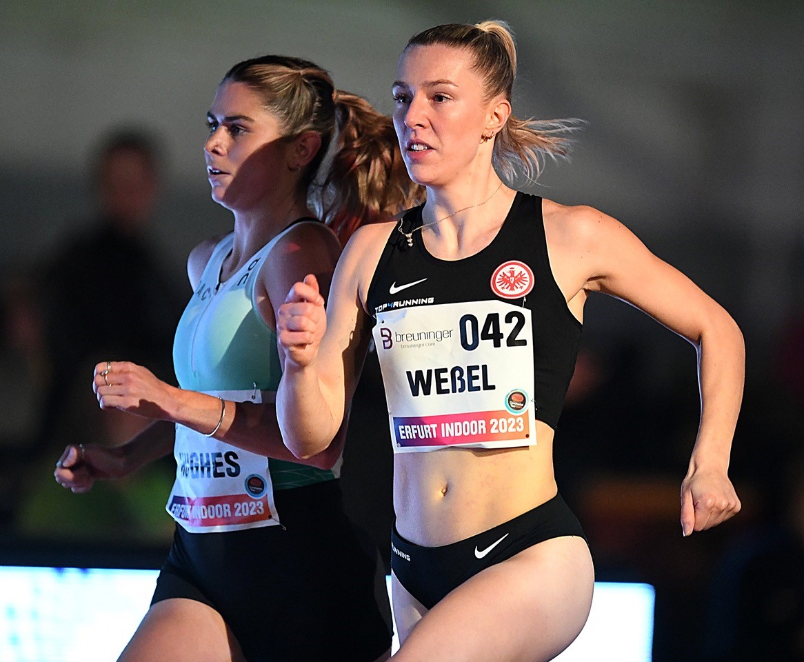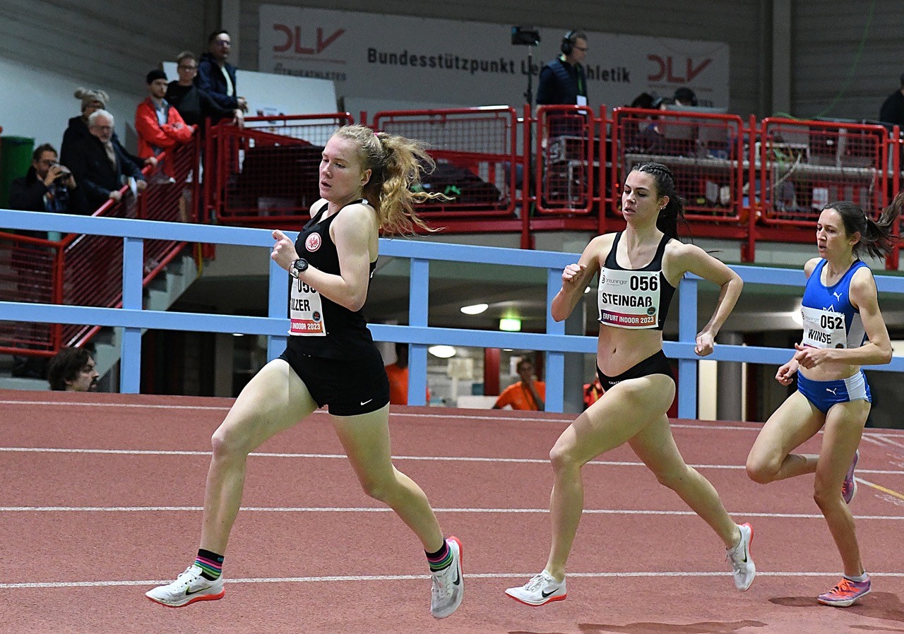 Beflügelt von der tollen Kulisse in der „Harwig-Gauder-Halle“ lieferten sich Nele Weßel (Eintracht Frankfurt) und Cari Hughes (GBR) ein spannendes Duell um den Sieg. Erst auf der letzten Runde konnte sich die Britin leicht lösen und mit 4:15,46 Minuten durchsetzen. Weßel tröstete sich nach 4:16,61 Minuten mit einer neuen Hallen-PB und ist fit für die nationalen Titelkämpfe. Den 1500 Meter B-Lauf gewann Eva Maria Sulzer (Eintracht Frankfurt) in Persönlicher Bestlesitung von 4:36,64 Minuten.