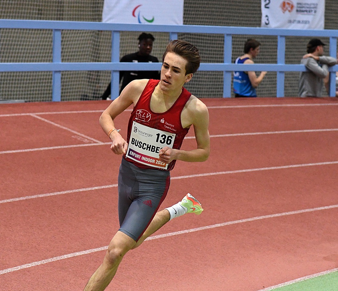 Ein heimisches Trio spulte im C-Lauf die vier Hallenrunden ab. Als Zweiter lief Pierre Börkey (TV Waldstraße Wiesbaden/U23) mit 1:51,48 Minuten (4. DLV) ins Ziel. Auf dem vierten Platz (1:52,80 min.) sortierte sich bei seinem Halleneinstand Okai Charles (Königsteiner LV/auch U23) ein. Teamkollege Louis Buschbeck (KLV/1. Jahr U20) hatte nach 1:54,06 Minuten (5.) einen neuen Hausrekord im Gepäck und ist aktuell bundesweit Dritter seiner Klasse.