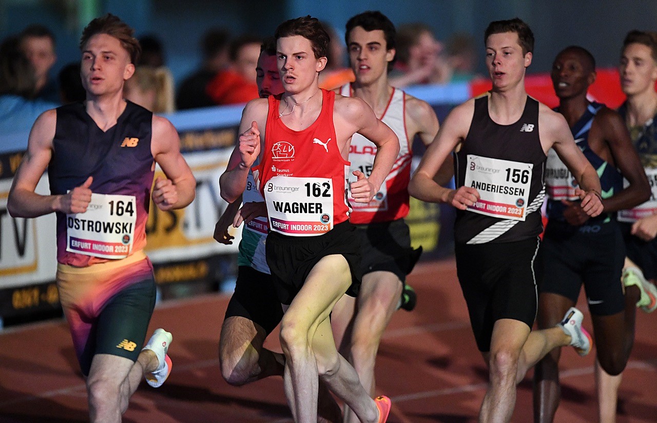 Auf den Mittelstrecken sorgten die Hessen für einen ganzen Schwung an Zeiten der Spitzenklasse und brachten damit reichlich Bewegung in die Bestenlisten der jeweiligen Altersklassen. Ein absoluter Überraschung-Coup gelang Sven Wagner (Königsteiner LV), der angefeuert von über 1000 Zuschauern, über 1500 Meter gegen internationale Konkurrenz zum Sieg stürmte und dabei auch die finale Attacke der beiden Kenianer Boaz Kiprugut bzw. Enedy Kiplimo abwehren konnte. Mit beeindruckenden 3:39,11 Minuten stellte der U23er eine neue Hallen-PB auf und führt sogar das DLV-Ranking in der Männerklasse an! Marc Tortell (Athletics Team Karben) markierte als Fünfter 3:40,65 Minuten (3. DLV-Liste Männer), Samuel Blake (Eintracht Frankfurt) wurde als Zwölfter mit 3:47,19 Minuten gestoppt.