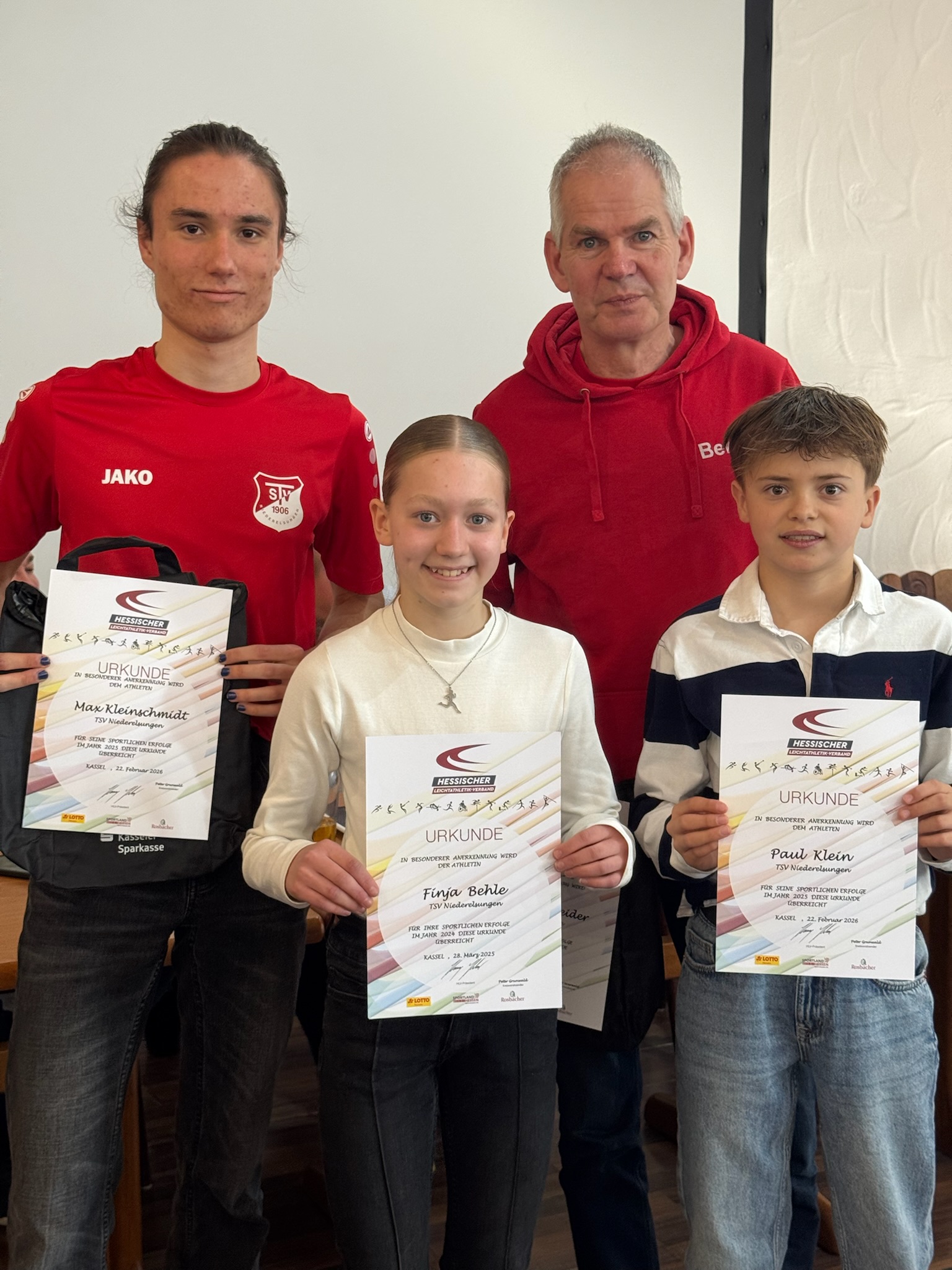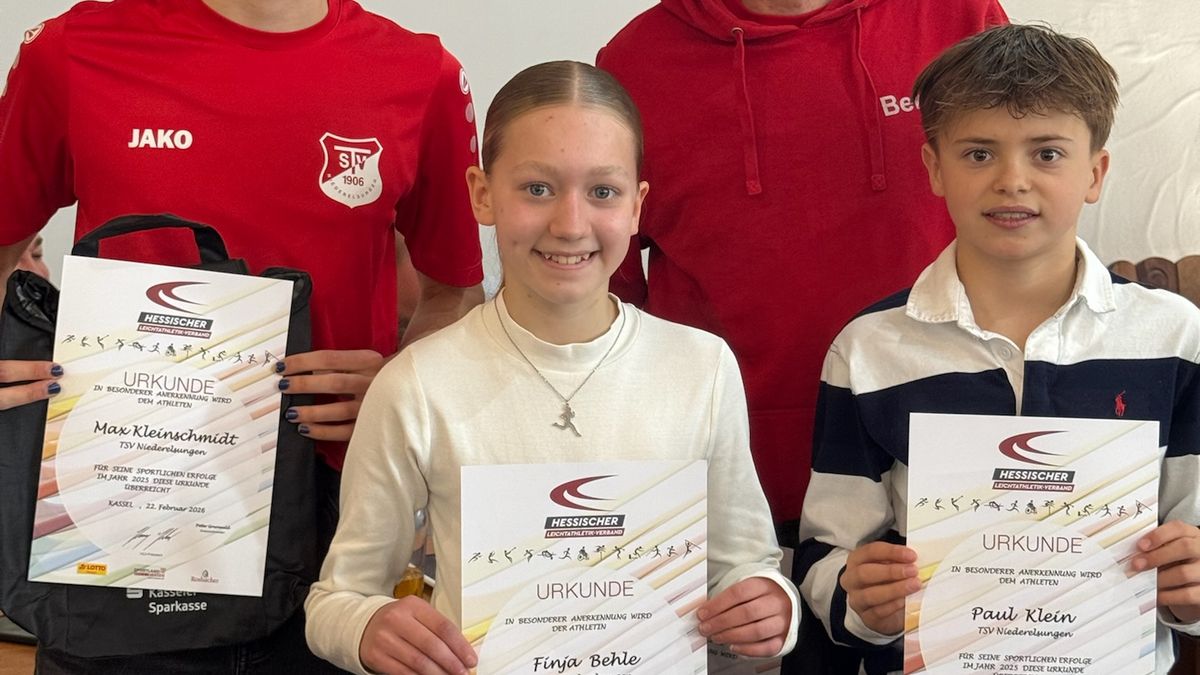 Für die abschließende Sportlerehrung hatte Statistikerin Hannelore Herrmann die größten Erfolge aus dem vergangenen Jahr zusammengestellt. An insgesamt 89 Athletinnen und Athleten wurden die Sportplaketten in Gold, Silber oder Bronze verliehen, nachdem sie mindestens einen Titel bei Hessischen Meisterschaften gewonnen hatten. Der Sonderpreis für die Nachwuchsathletin des Jahres ging an Mittelstrecklerin Pauline Kleesiek (LAV Kassel), die bei den Deutschen U20-Meisterschaften eine Bronzemedaille gewann. Kleesiek war am Sonntag verhindert und erhielt ihre Auszeichnung stattdessen bereits am Freitag bei der Gala des Sparkassen-Grand-Prix. Neben den Sportlern wurden auch Heidi Helferich, Malte Schröder und Andreas Grunwald-Fischer für ihre ehrenamtliche Mitarbeit geehrt.
