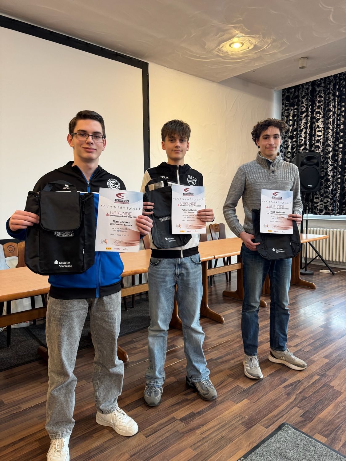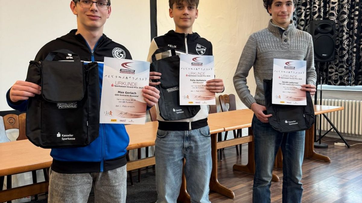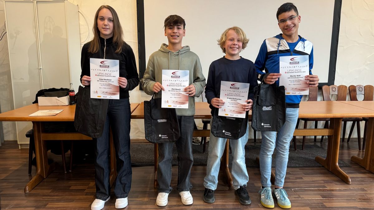 Die Kasseler Sparkasse stellte für die beteiligten Vereine insgesamt 5300 Euro zur Verfügung. Marcel König, Leiter des Beratungscenters Bad Wilhelmshöhe, würdigte in seinem Grußwort neben den sportlichen Leistungen besonders das Engagement von Eltern, Trainern und Betreuern. Gemeinsam mit Christina Hackenberg aus der Sponsoring-Abteilung begleitete er die Ehrung.
